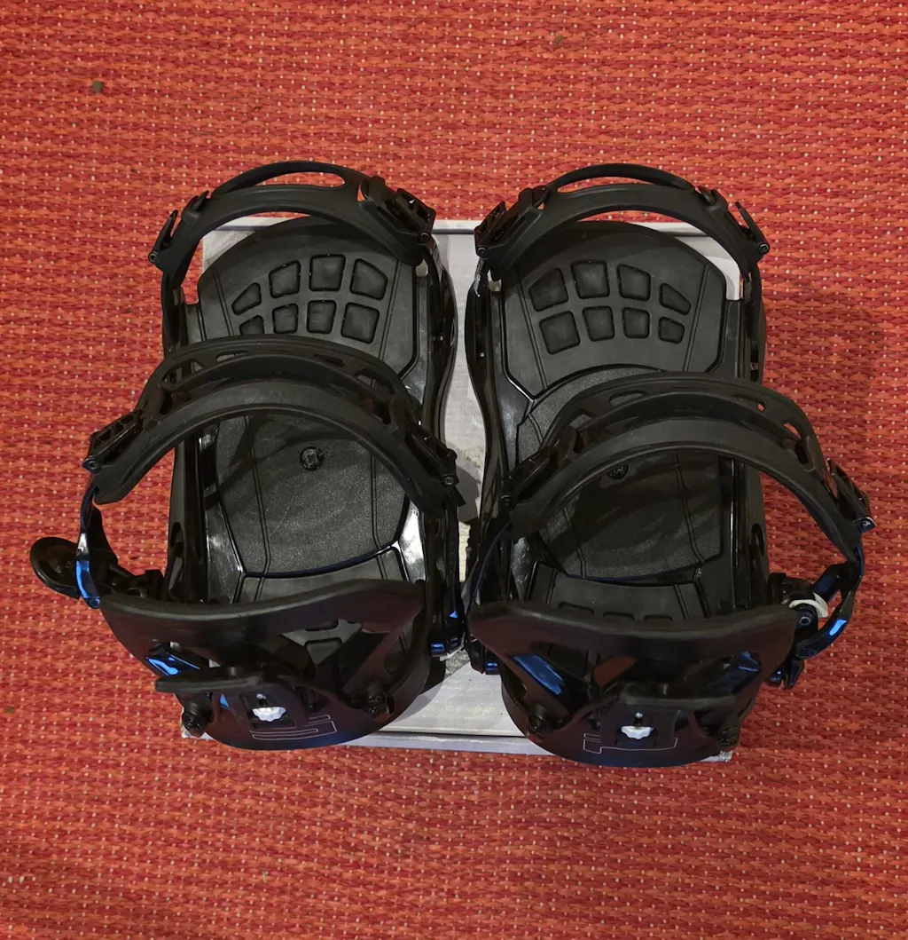 Gute Bindung, sehr vielseitig, man kann sie normal über die zwei Schnallen schließen oder über den Schnelleinstieg. Der Boden der Bindung ist allerdings recht billig mit etwas Schaumgummi der über die Schrauben fürs Board gelegt ist.